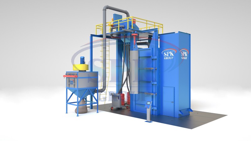 Дробеметная установка с подвесной системой SPK-DMK P и обитаемой камерой доочистки изделий